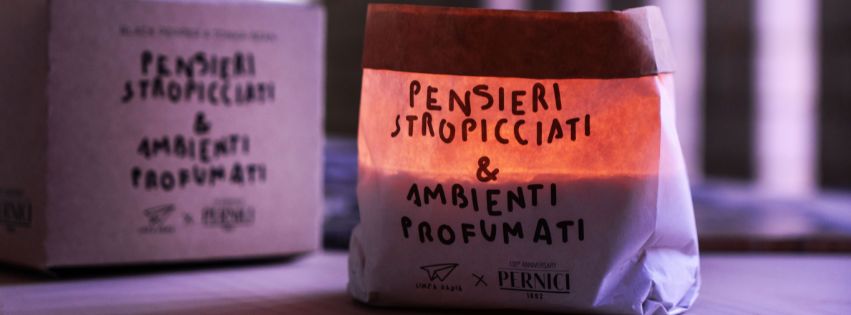 . De la collaboration entre Cereria Pernici et Linea Daria naît ‘Pensieri Stropicciati’, une ligne de bougies parfumées dans un sac en papier ignifugé qui devient une élégante lanterne pour éclairer l’été.