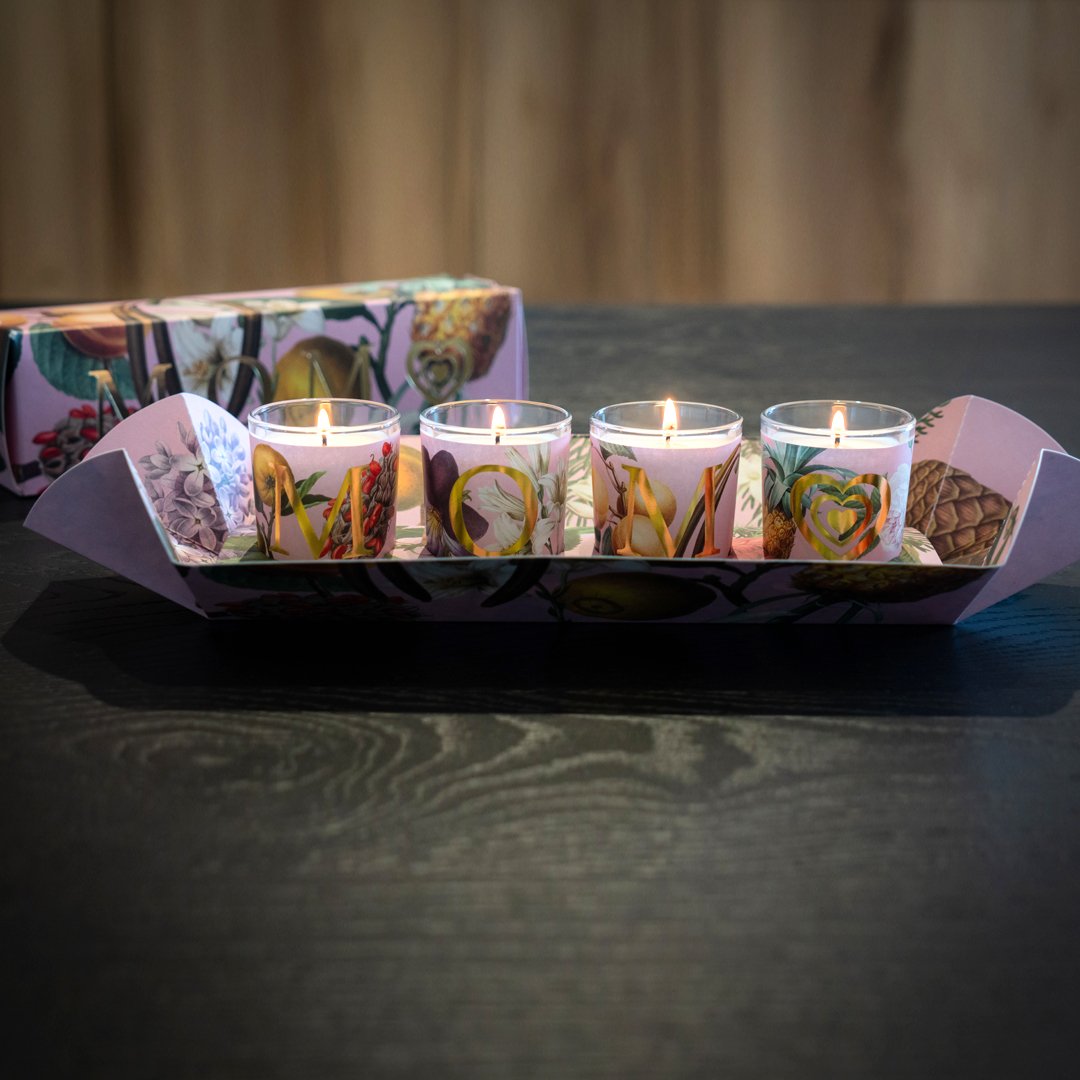 Quattro candele, quattro fragranze distinte che accese insieme creano un abbraccio profumato, che sente di mamma, di casa, unico e per sempre.